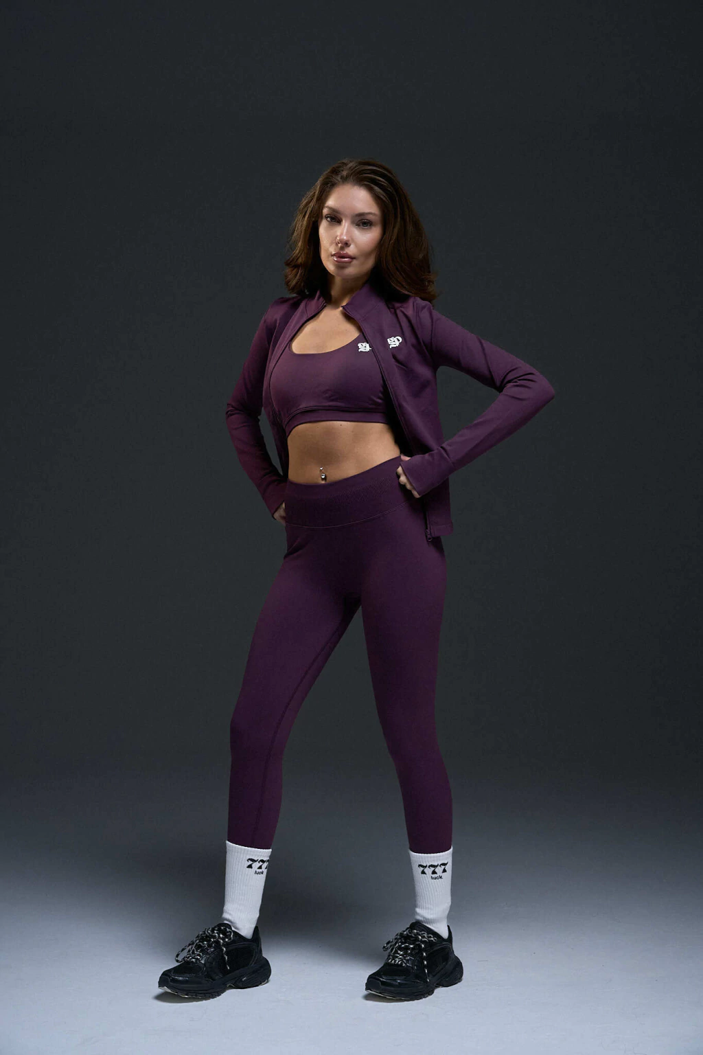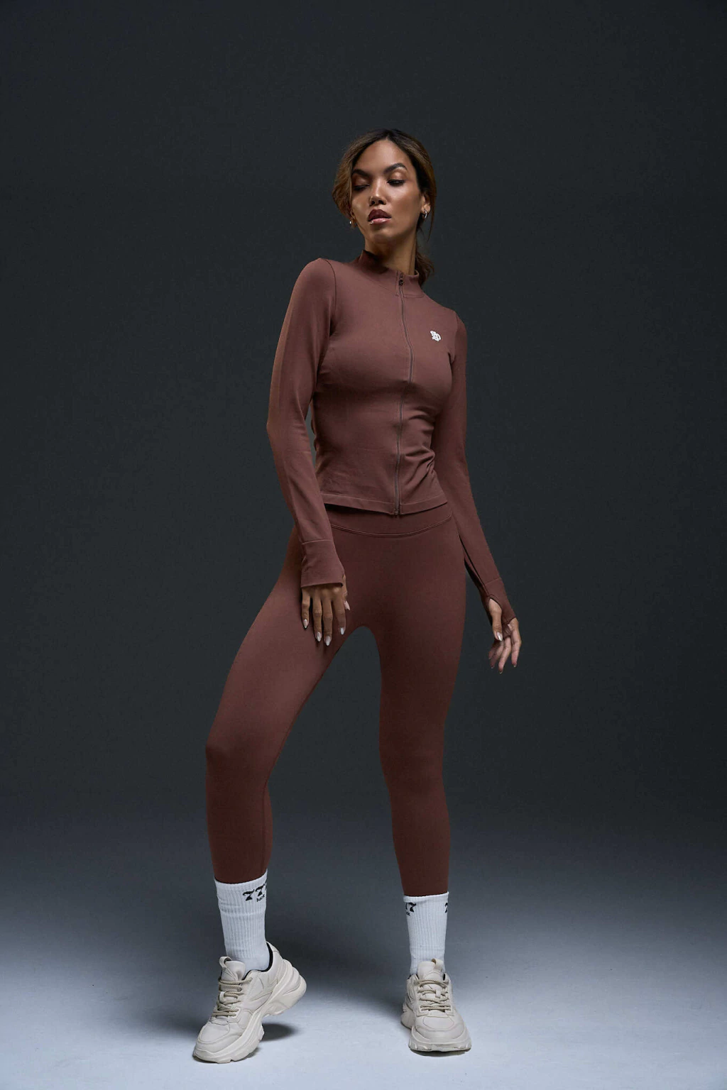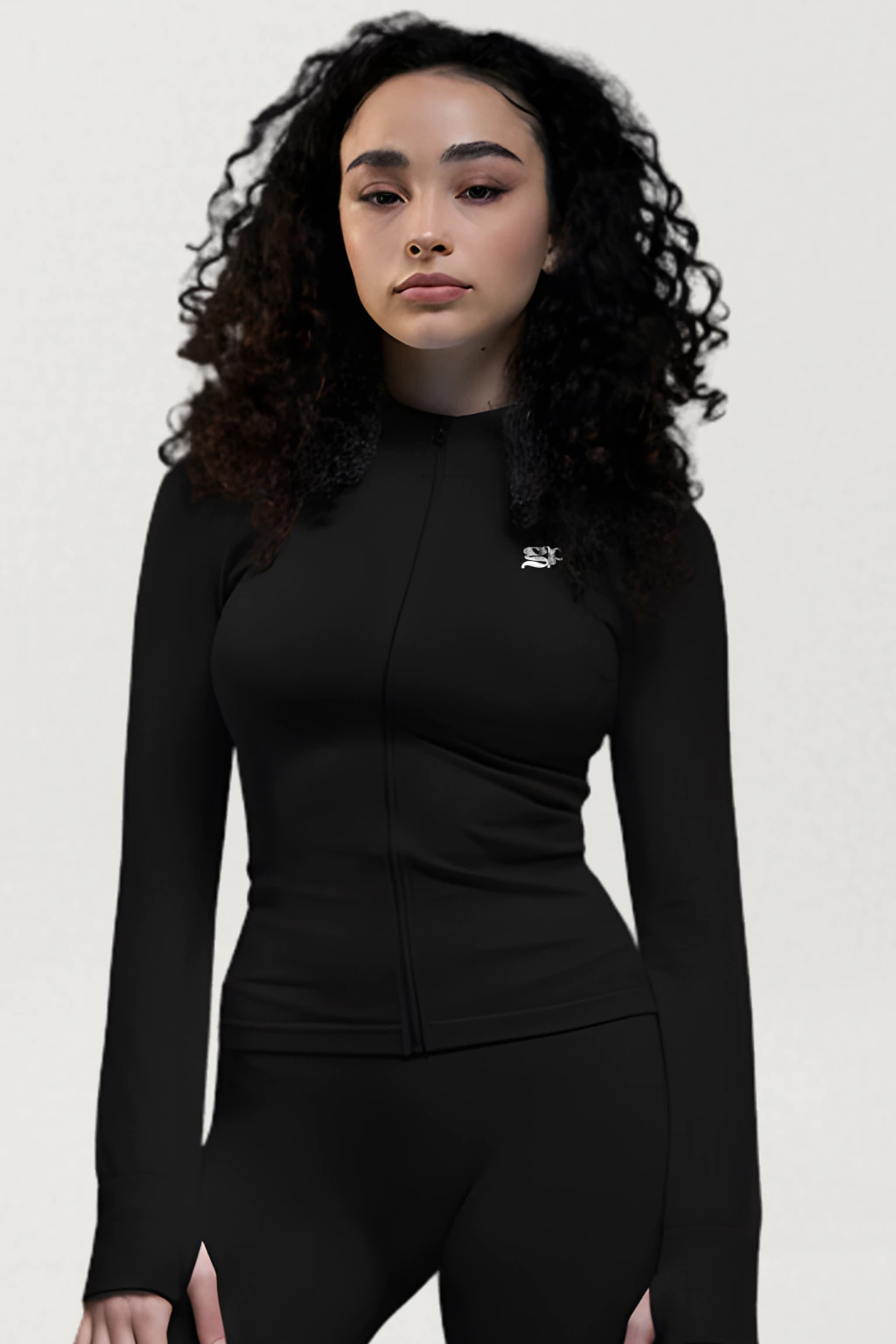 Su diseño con cierre frontal y cuello alto brinda un toque sofisticado y funcional, ideal para entrenamientos, caminatas o un look urbano premium.